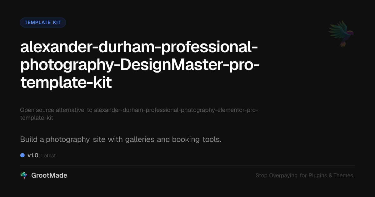 GrootMade is not affiliated with alexander-durham-professional-photography-elementor-pro-template-kit and provides an open-source alternative.