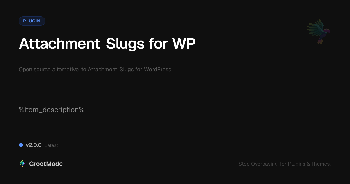 GrootMade is not affiliated with Attachment Slugs for WP and provides an open-source alternative.