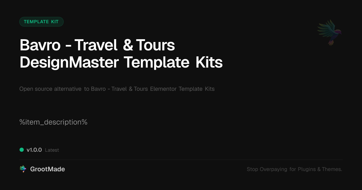 GrootMade is not affiliated with Bavro - Travel & Tours Elementor Template Kits and provides an open-source alternative.