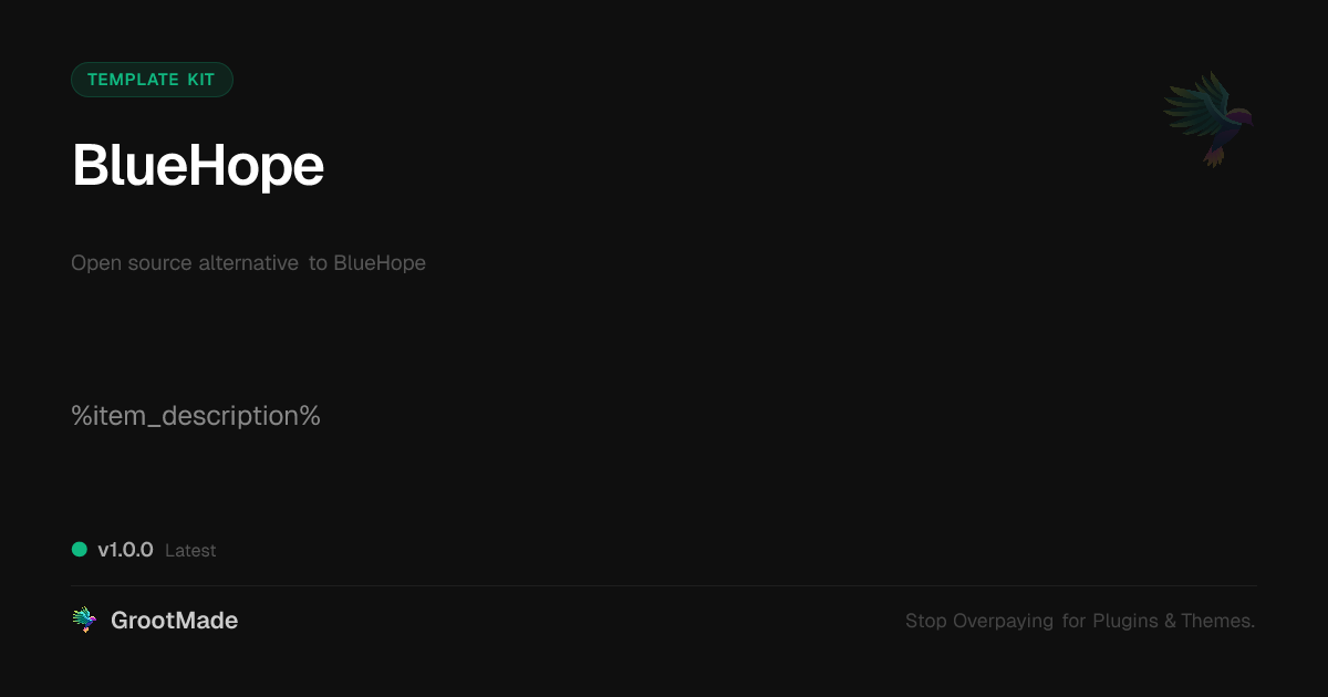 GrootMade is not affiliated with BlueHope and provides an open-source alternative.