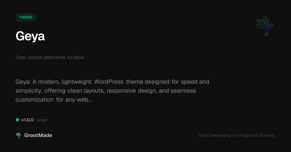 GrootMade is not affiliated with Geya and provides an open-source alternative.