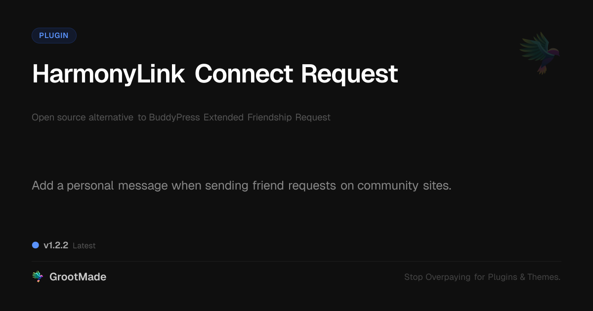 GrootMade is not affiliated with BuddyPress Extended Friendship Request and provides an open-source alternative.