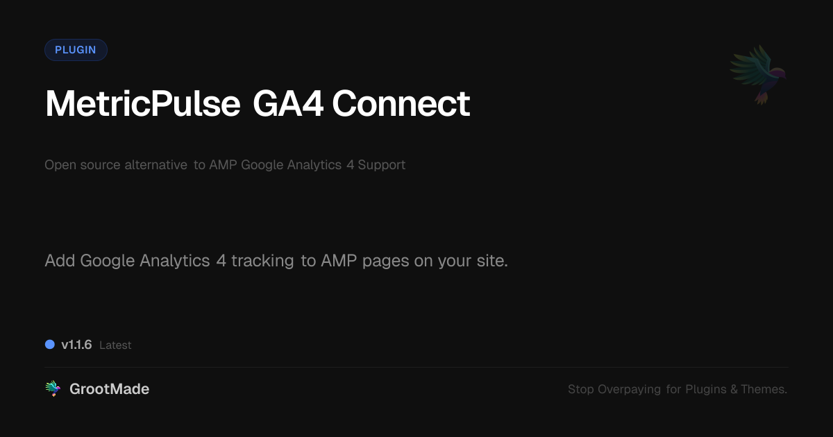 GrootMade is not affiliated with AMP Google Analytics 4 Support and provides an open-source alternative.