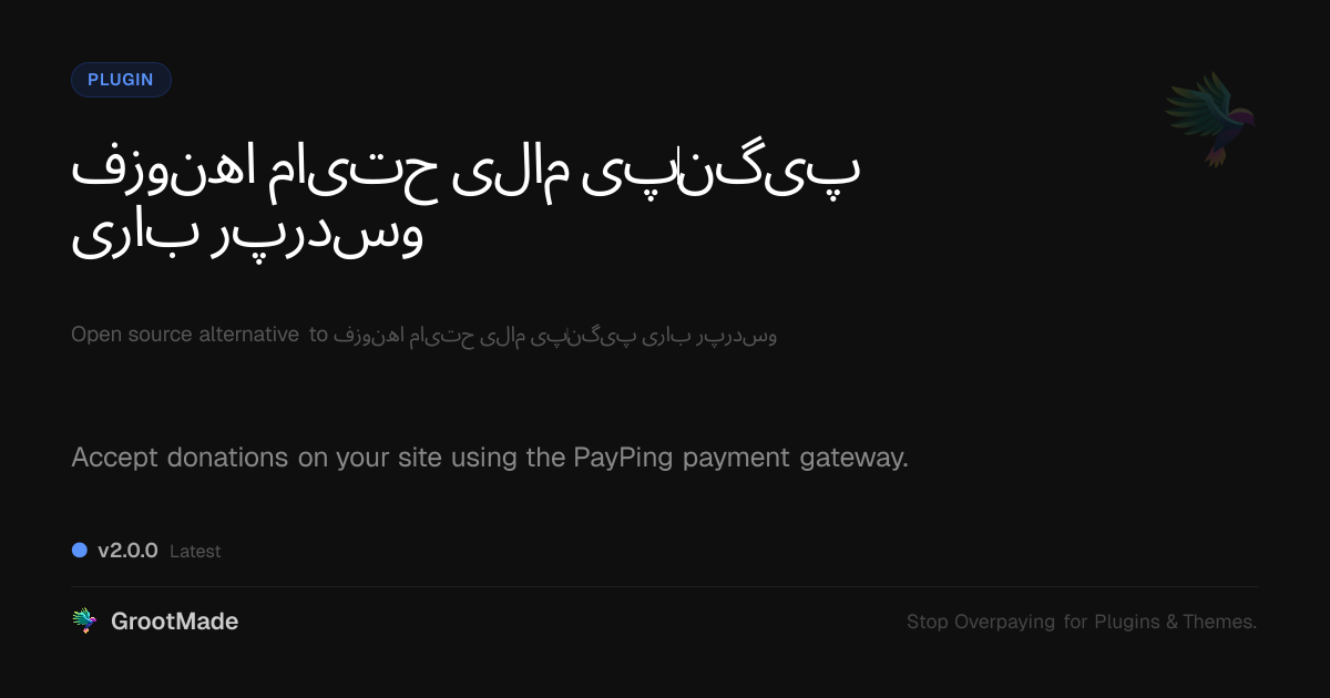 GrootMade is not affiliated with افزونه حمایت مالی پیپینگ برای وردپرس and provides an open-source alternative.